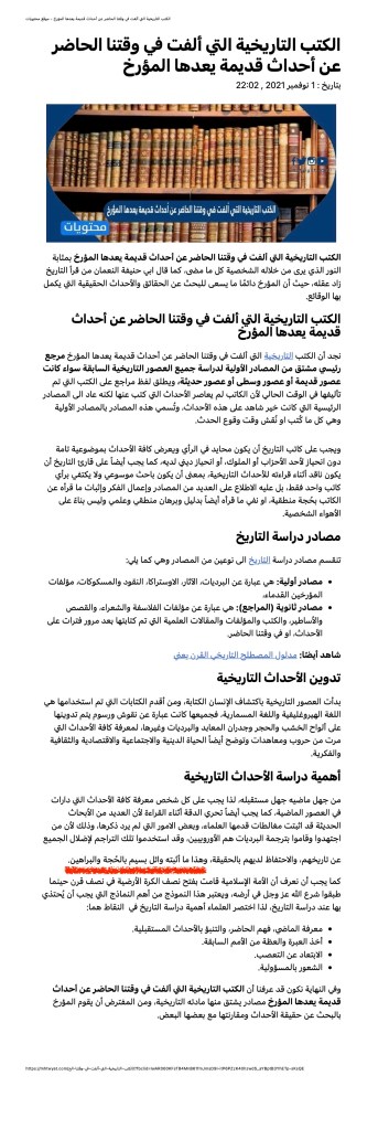 - 1 الكتب التاريخية التي ألفت في وقتنا الحاضر عن أحداث قديمة يعدها المؤرخ